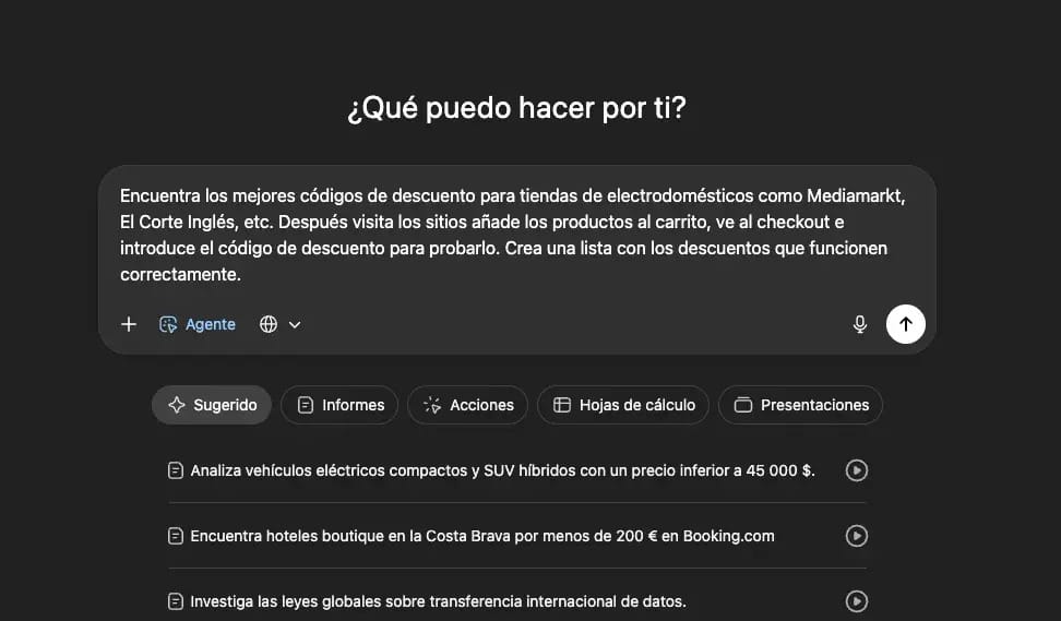 💳 Encuentra códigos de descuento con el Modo Agente de ChatGPT