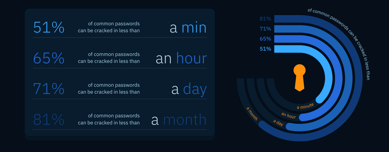 La empresa de ciberseguridad Home Security Heroes utilizĂł un descifrador de contraseĂąas basado en IA para probar 15,600,000 contraseĂąas comunes y descubriĂł que podĂan descifrar un sorprendente 51% de estas contraseĂąas en menos de un minuto.