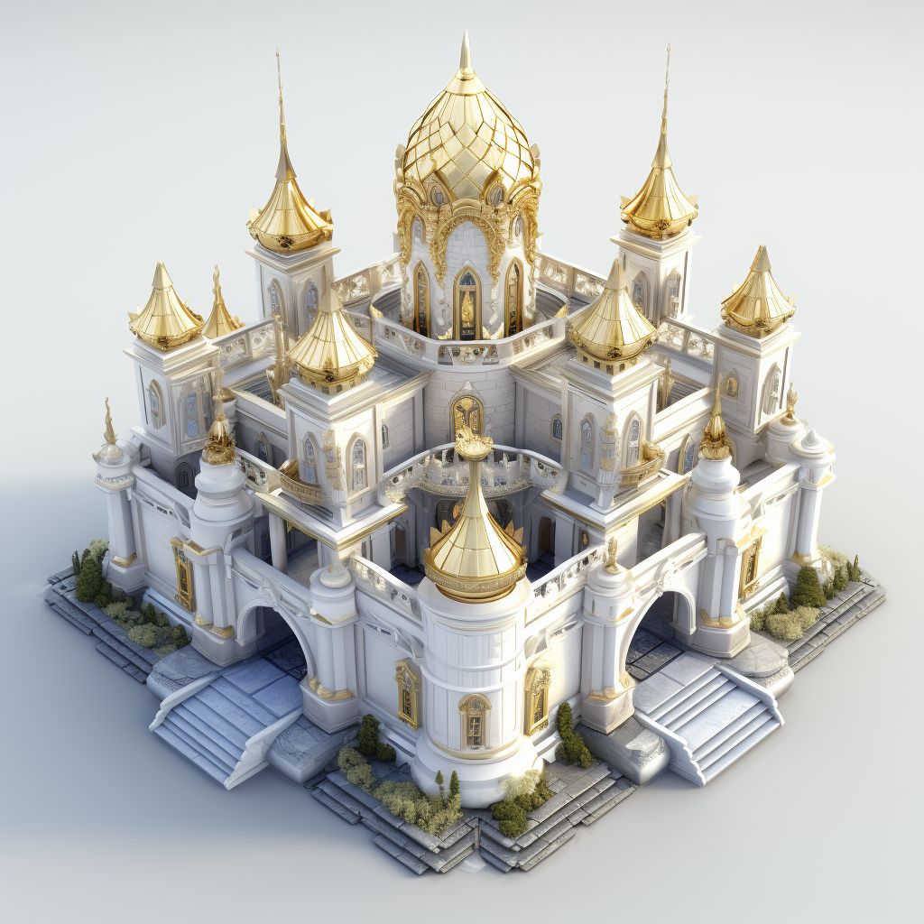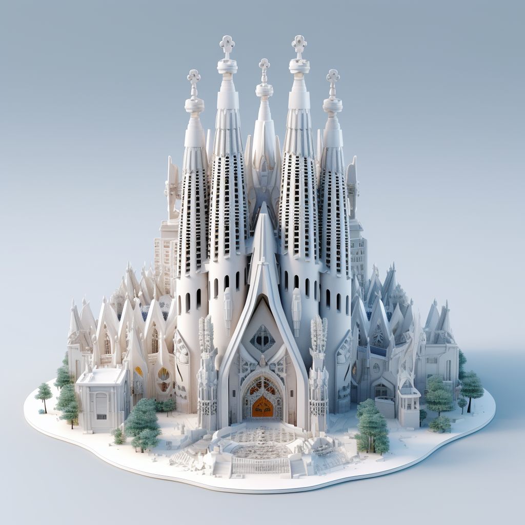 modern, isometric blender 3D model, Sagrada Familia Barcelona [edificio que escojas], MMORPG structure, sculpted details, white Background --style raw