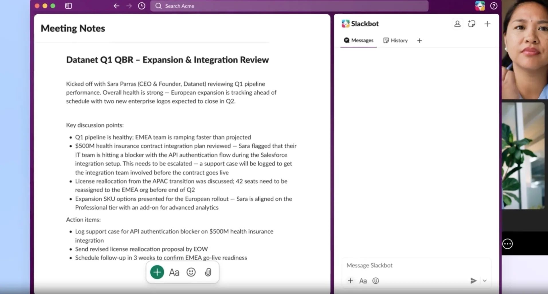 El asistente agente de Slack ahora puede crear habilidades reutilizables que se pueden usar entre equipos, entregar resúmenes estructurados post-reunión y recordar contexto a través de tu ordenador (con permisos ajustables). Las nuevas actualizaciones se desplegarán durante los próximos meses.
