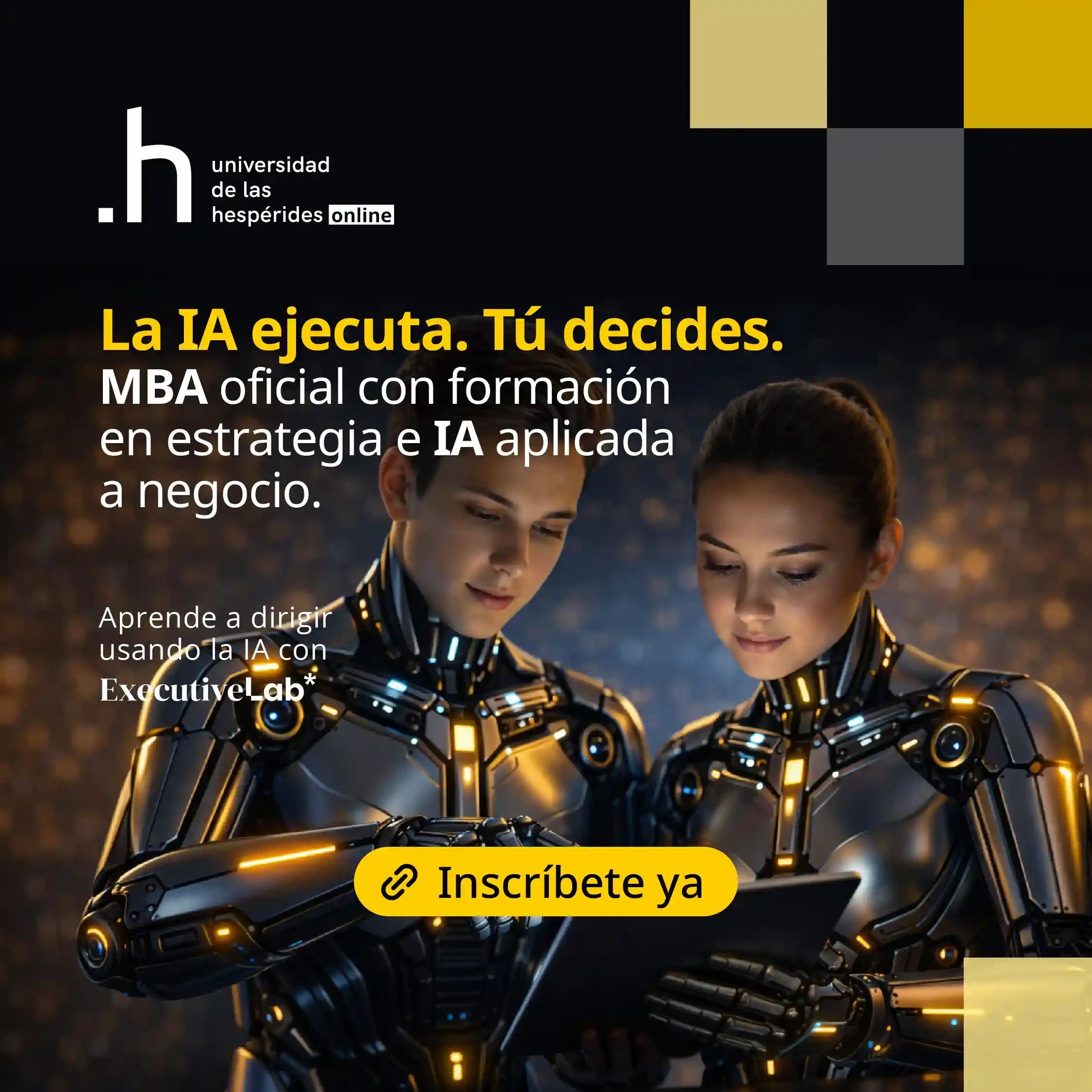 Pero antes, bienvenida a la Universidad de las Hespérides, que se estrena hoy con nosotros. Lanzan un MBA online, oficial y europeo que incluye un bloque completo de IA aplicada a la empresa. Y con la beca de esta edición, el precio queda en 1.275€. Para un título de 60 ECTS, es difícil encontrar algo así.
