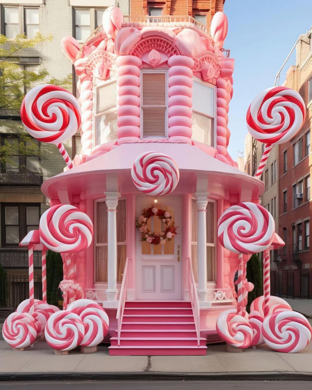 ¿Y si de golpe nuestra ciudad se recubre de caramelo toda ella? Esto es lo que nos plantea la artista de IA @iva_ia_popsurreal.