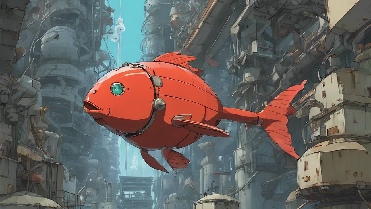 Fuente: Sakana AI | Un pez hecho con IA descubriendo su mundo