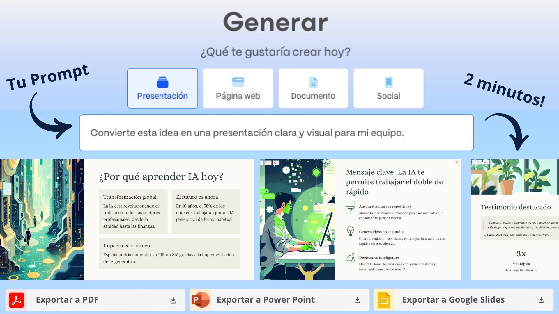 ✅ Crea presentaciones completas con solo escribir lo que quieres comunicar.