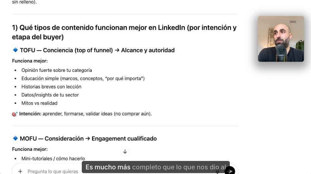 1️⃣ En vez de pedir el resultado directo, empieza con una pregunta que fuerce análisis "¿Qué tipos de contenido generan más engagement en LinkedIn para un SaaS B2B?".